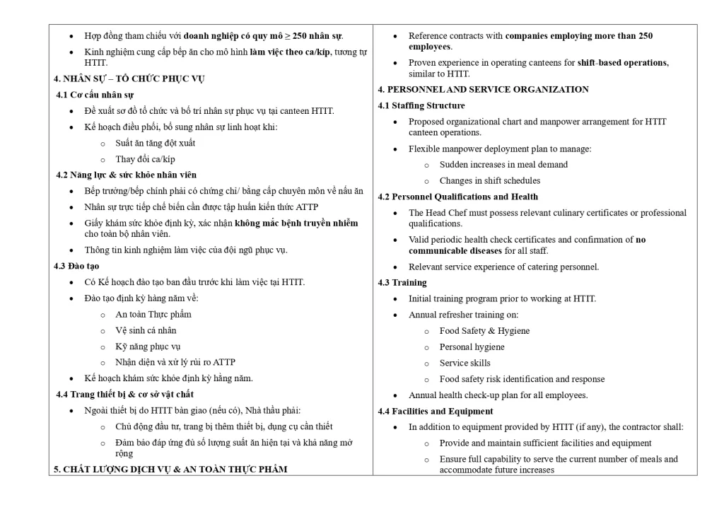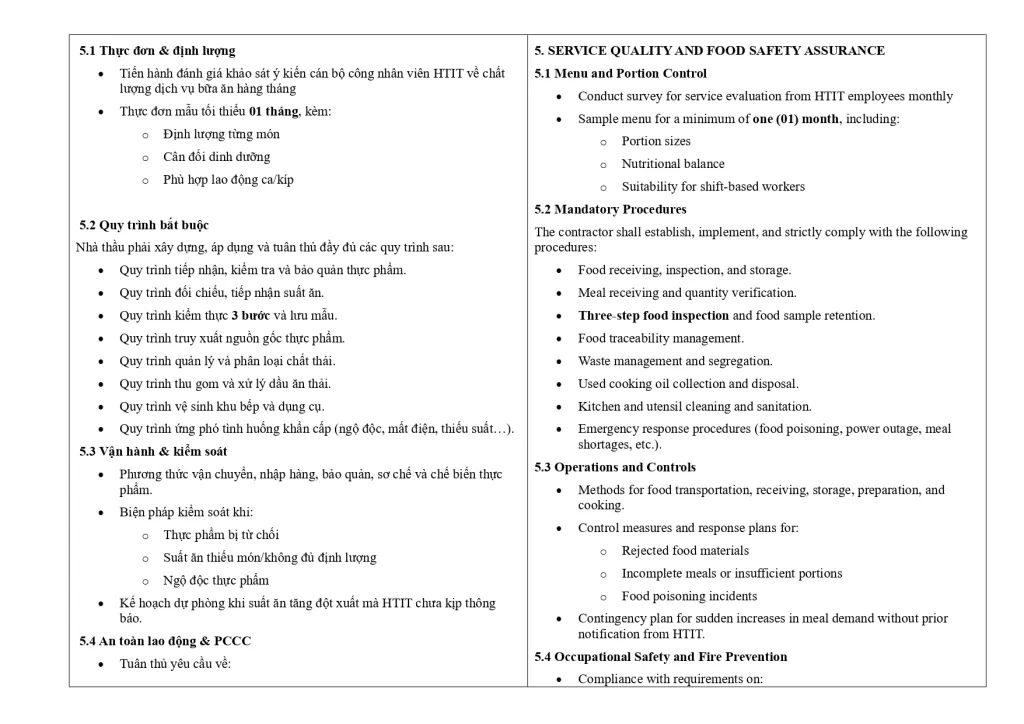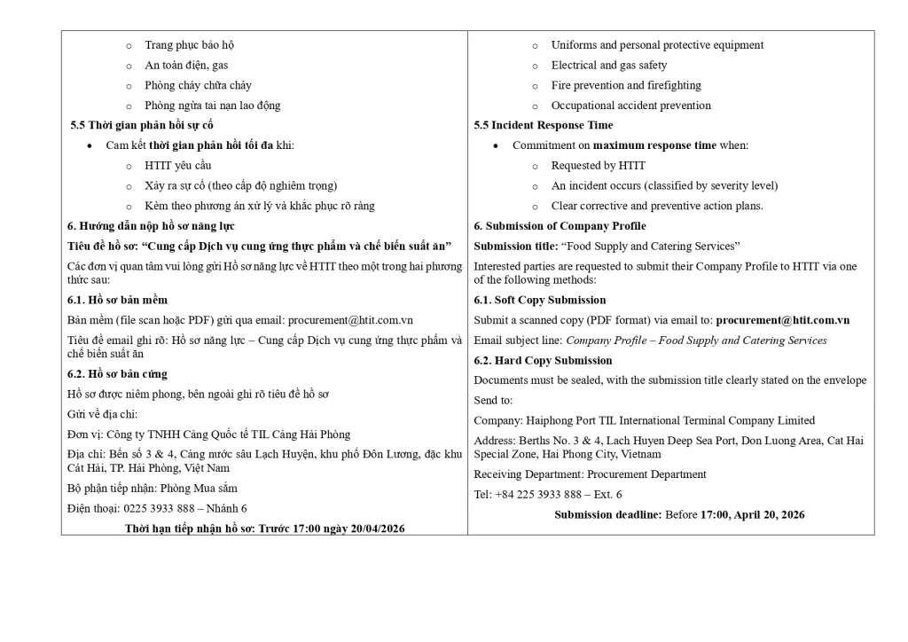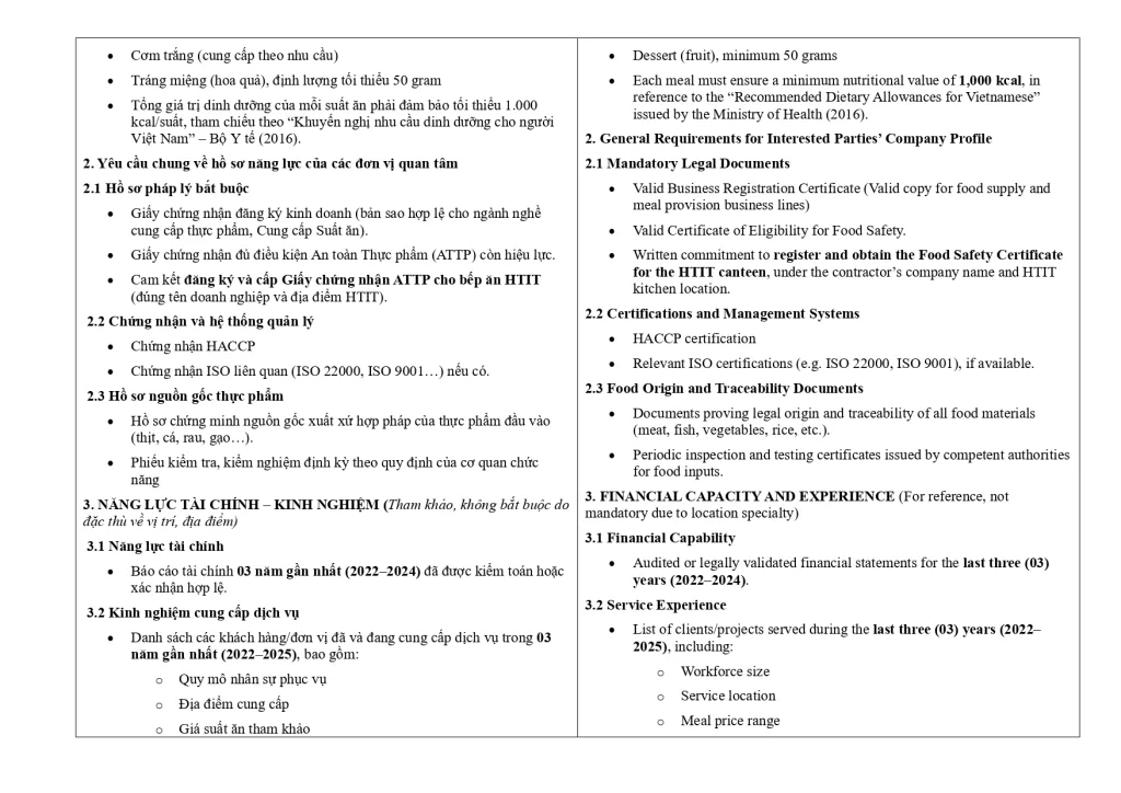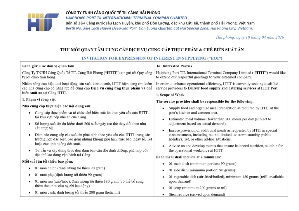 Thư mời quan tâm cung cấp dịch vụ cung cấp thực phẩm & chế biến suất ăn